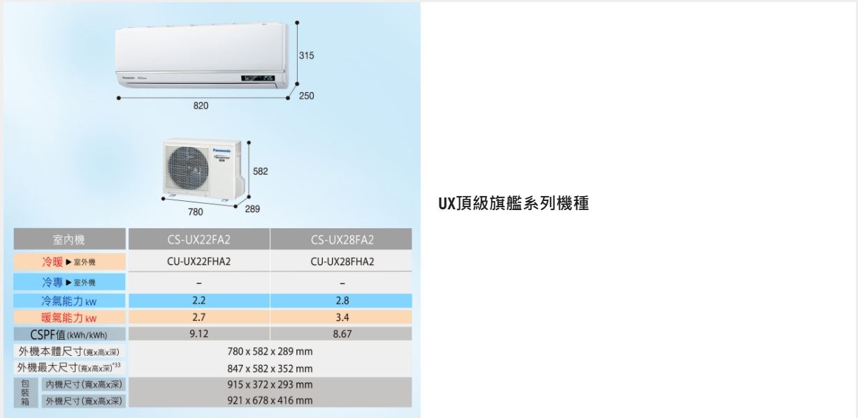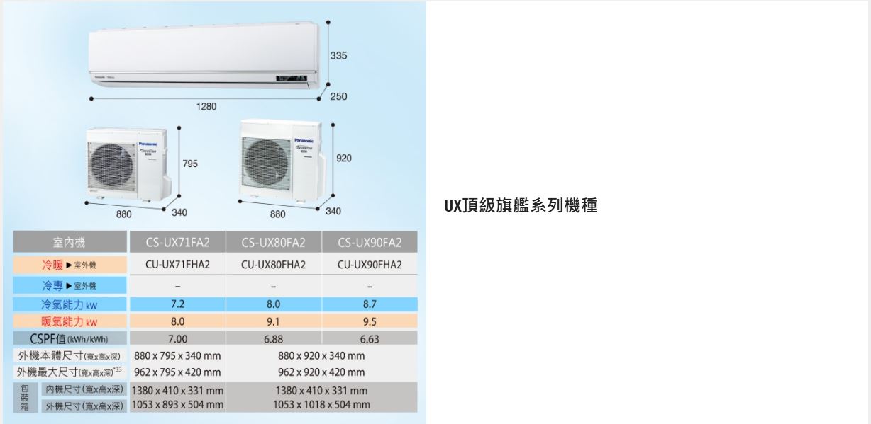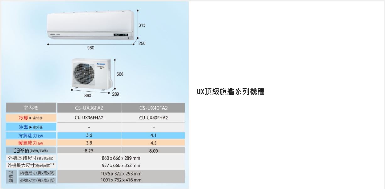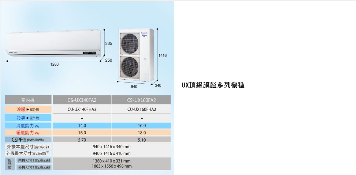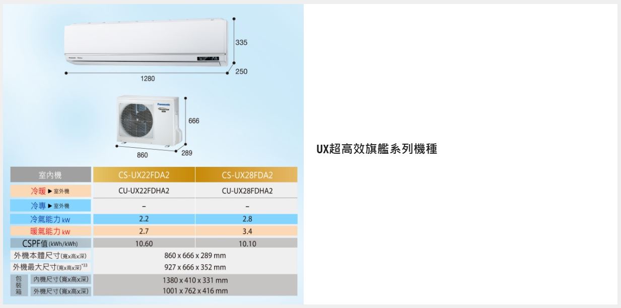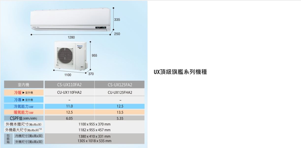 【國際PANASONIC】一對一變頻分離式 UX超高效旗艦/頂級旗艦系列